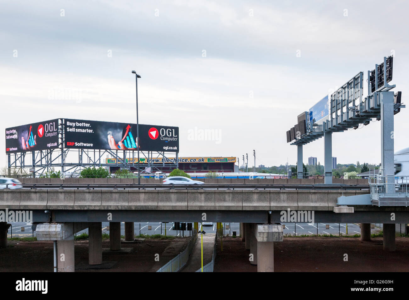 Raised Section Of The M6 Motorway With Gantry And High Level Electronic Advertising Billboard At Dusk Bescot Walsall West Midlands England Uk Stock Photo Alamy
